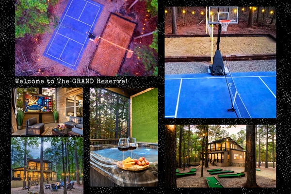 Luxury cabin in pines with mini golf & elegant spaces.